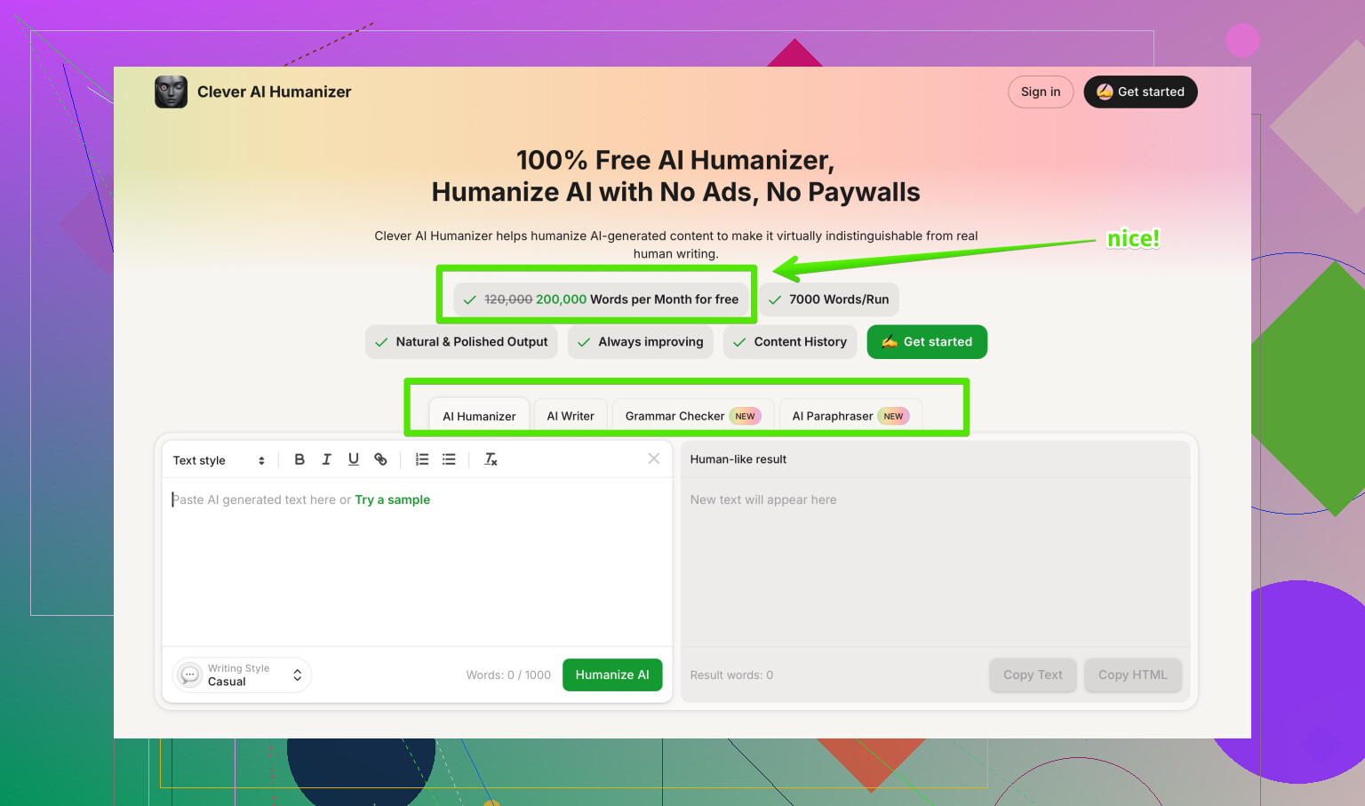 - Detector scores improve, especially on ZeroGPT / GPTZero, and that is better than a lot of “humanizers.”