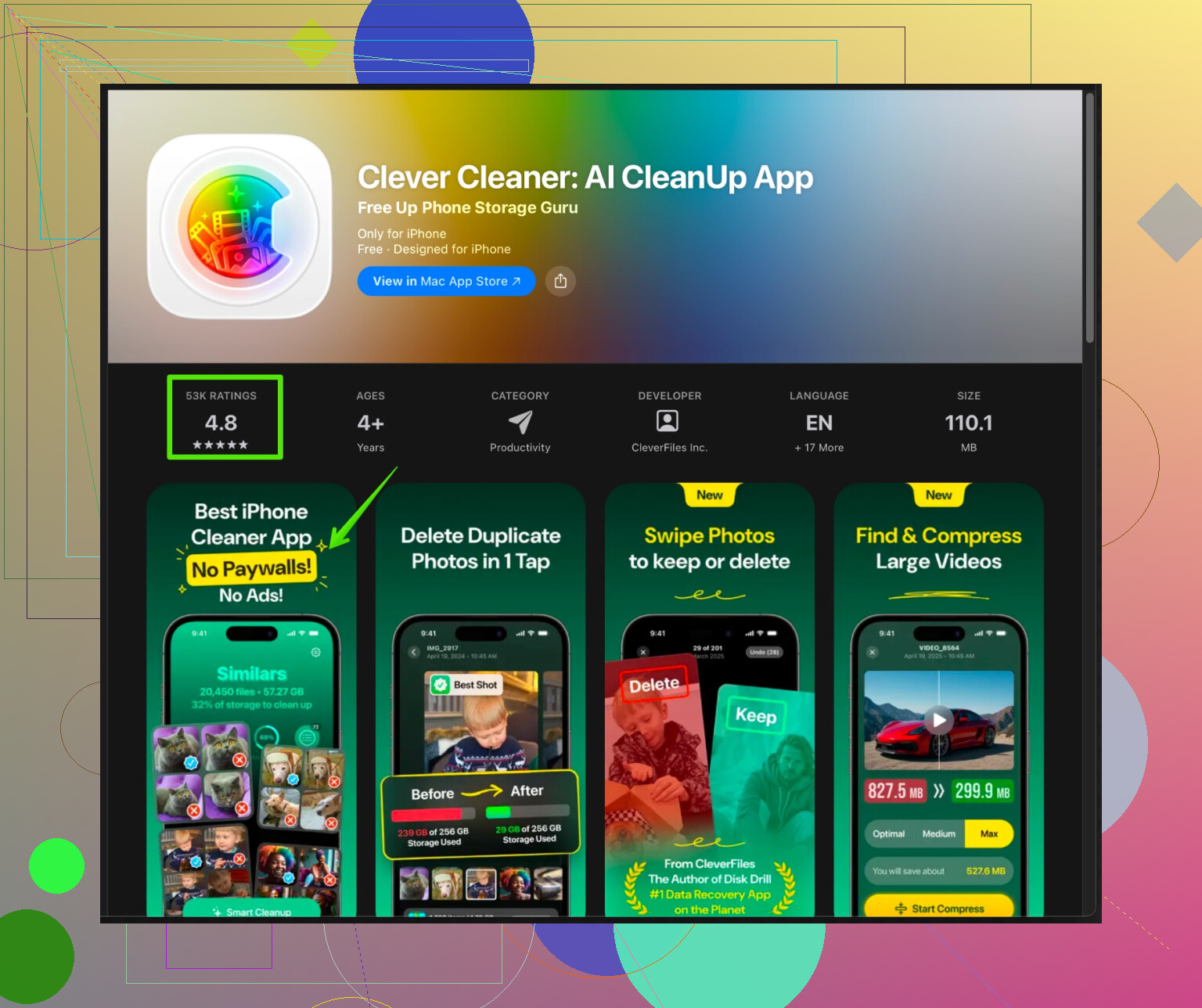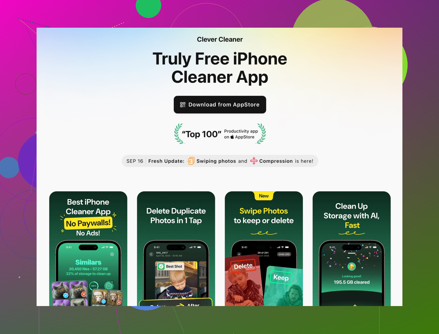 Dato che hai già eliminato alcune foto, il passo successivo è togliere duplicati, foto simili, video molto grandi e screenshot inutili, senza toccare ciò che è importante.Per questo, prova un’app come Clever Cleaner App. Aiuta a trovare foto duplicate e simili, video pesanti e screenshot casuali che occupano spazio. Organizza tutto in modo chiaro così puoi scegliere cosa eliminare. Niente tentativi alla cieca.
