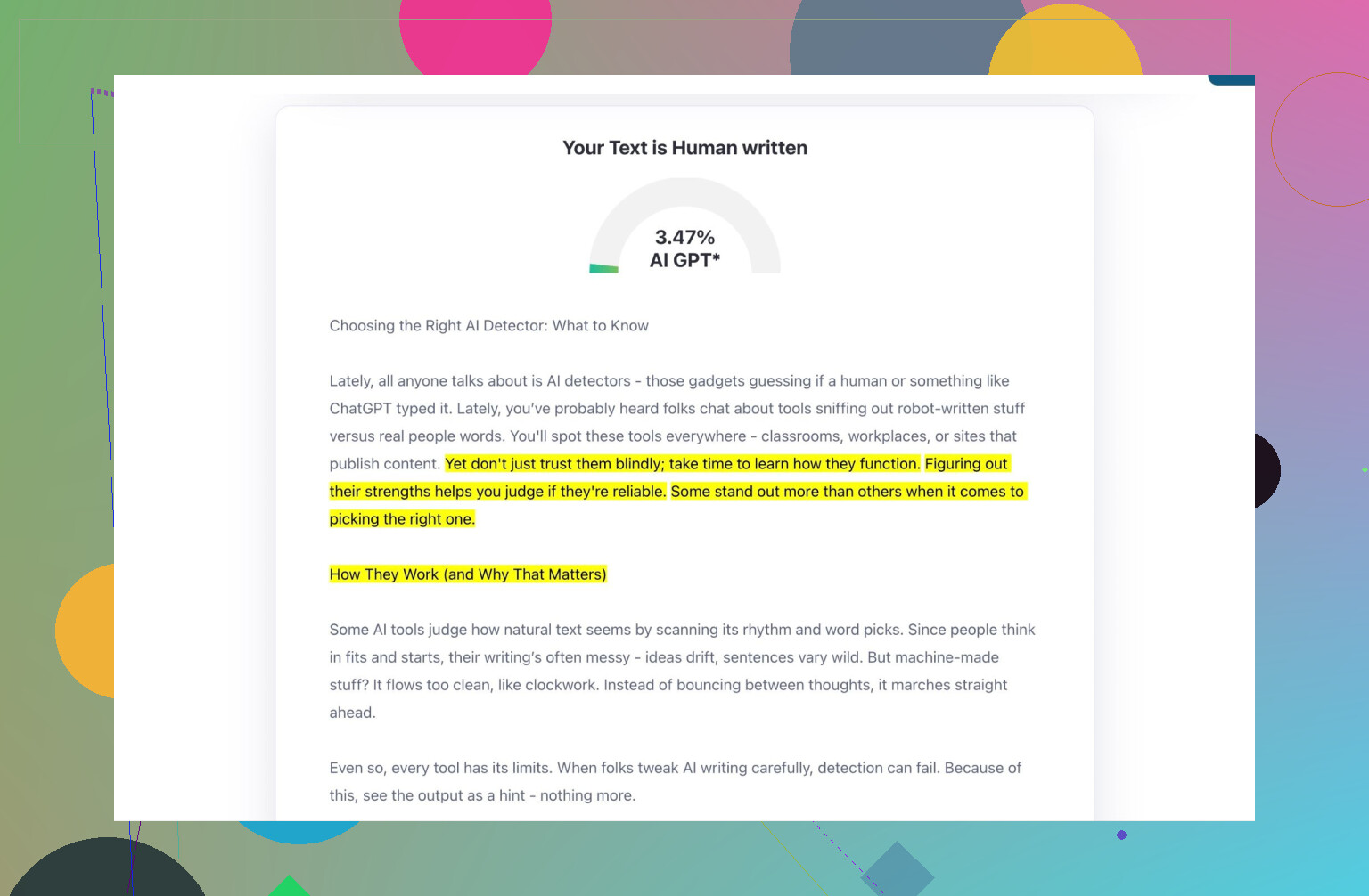 Also, go ahead and contradict yourself or get a fact slightly wrong and admit it (“I guess it was 2003, or maybe ’04—who remembers anymore?”). Detectors love consistency; real people are like, “wait, what was I saying?” Sprinkle in lists that stop halfway, swap formal words for a clunky “like, ya know,” and play with punctuation. Heck, use emojis or ALL CAPS once in a blue moon. If it feels too clean, mess it up.