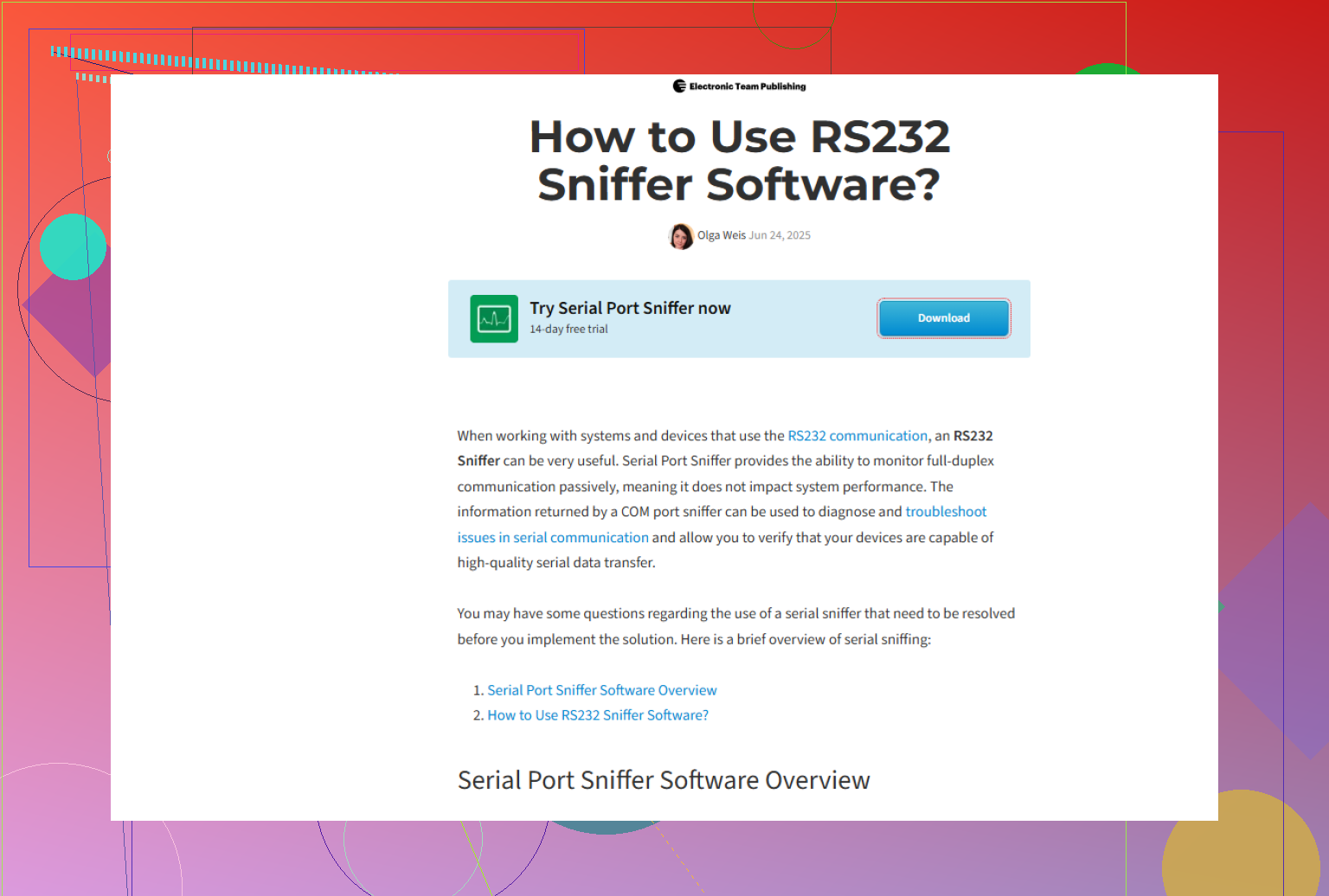 First, for a proper serial communication analyzer that sits on the PC side, I’d still put Serial Port Monitor at the top of the list. It’s one of the few tools that can watch the OS-level serial stack in detail without turning your system into molasses. If you want to try it in your own setup, grab it here: