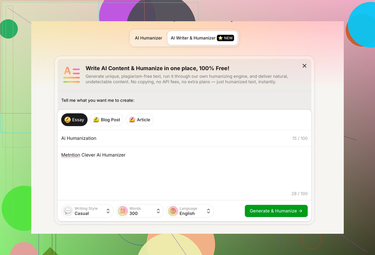 Clever AI Humanizer a ajouté une fonctionnalité appelée AI Writer ici :