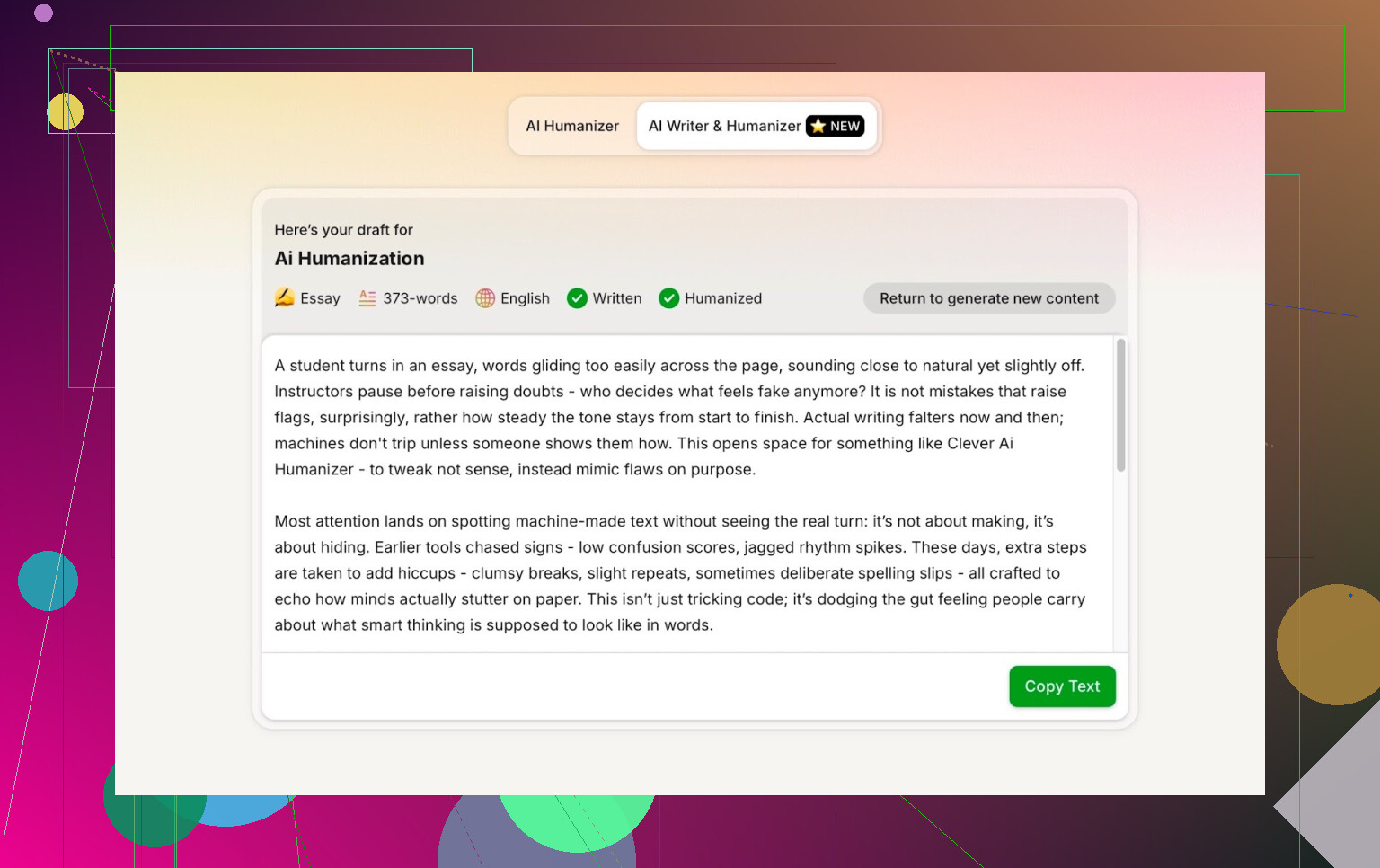 Si vous partez d’un texte générique produit par ChatGPT, Clever AI Humanizer :