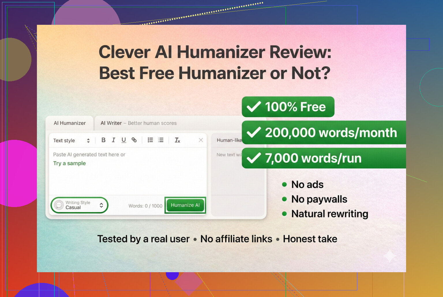 Version courte : Clever AI Humanizer est actuellement l’une des meilleures options gratuites, mais ce n’est pas un outil “je clique et j’oublie” et il peut vraiment aplatir la voix si vous n’êtes pas vigilant.