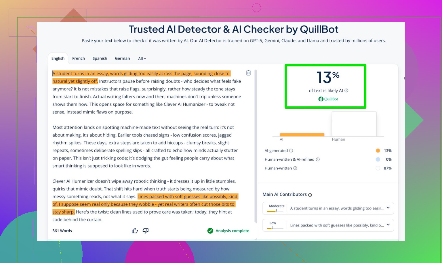 - Détecteur QuillBot : 13 % AI