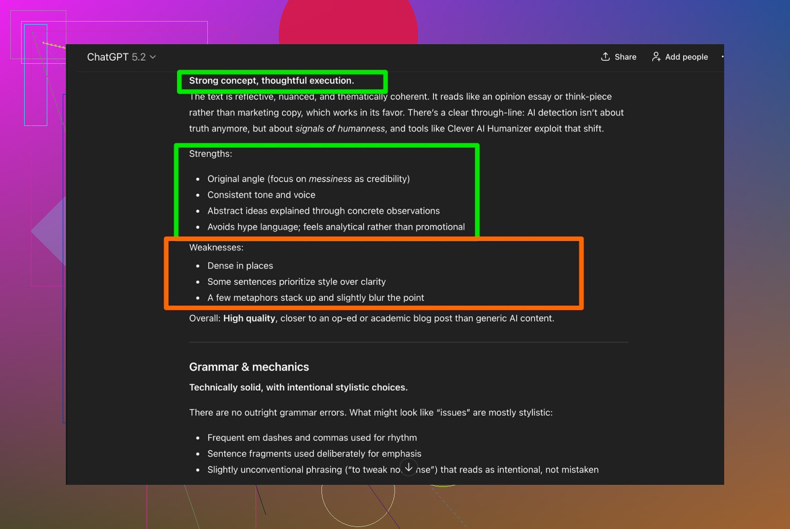 J’ai repassé cette sortie « writer + humanizer » dans ChatGPT 5.2 pour voir s’il allait :