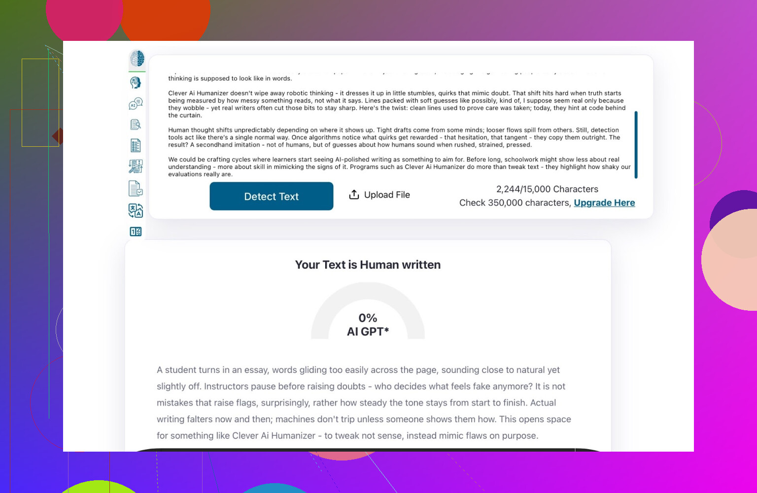 Sur des rapports longs ou des travaux en plusieurs chapitres, traiter les sections séparément avec Clever AI Humanizer produit souvent de micro‑variations de ton et de niveau de formalité. @hoshikuzu l’a signalé, et j’ai constaté la même chose : on a l’impression de lire plusieurs “auteurs” apparentés plutôt qu’une seule voix humaine continue.
