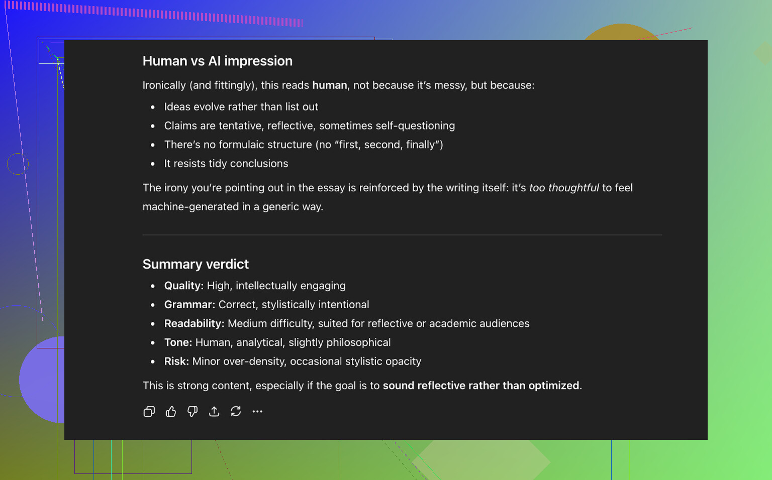 - Même s’il bat les détecteurs simples, des modèles plus sophistiqués et des humains habitués au texte IA peuvent encore “sentir” le motif