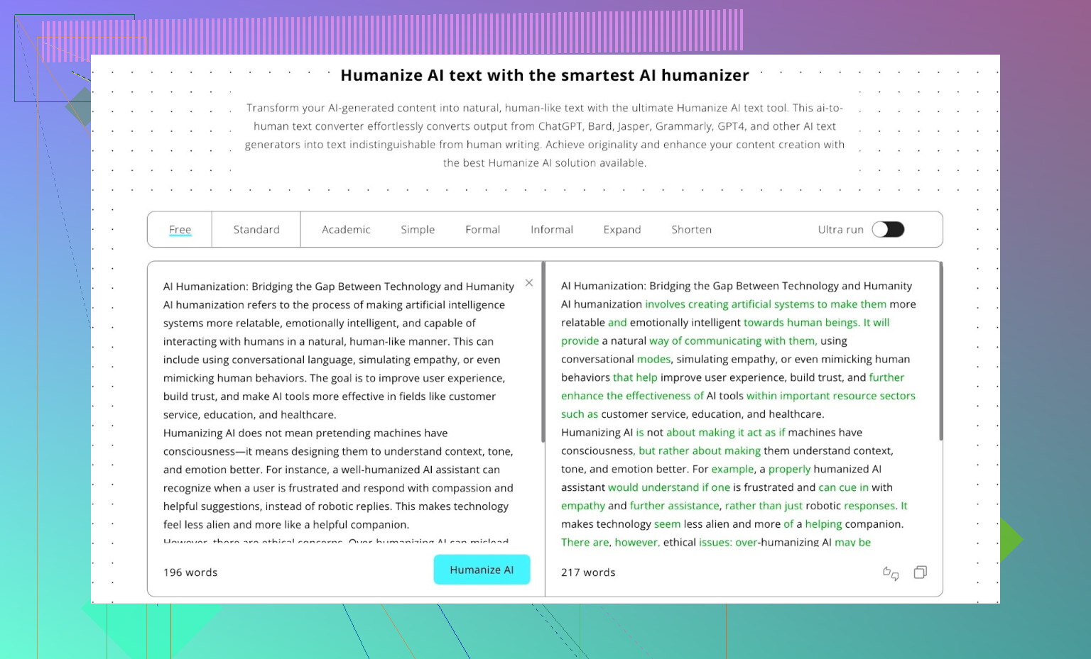 - Humanize AI Pro – (Grátis, mas devagar)