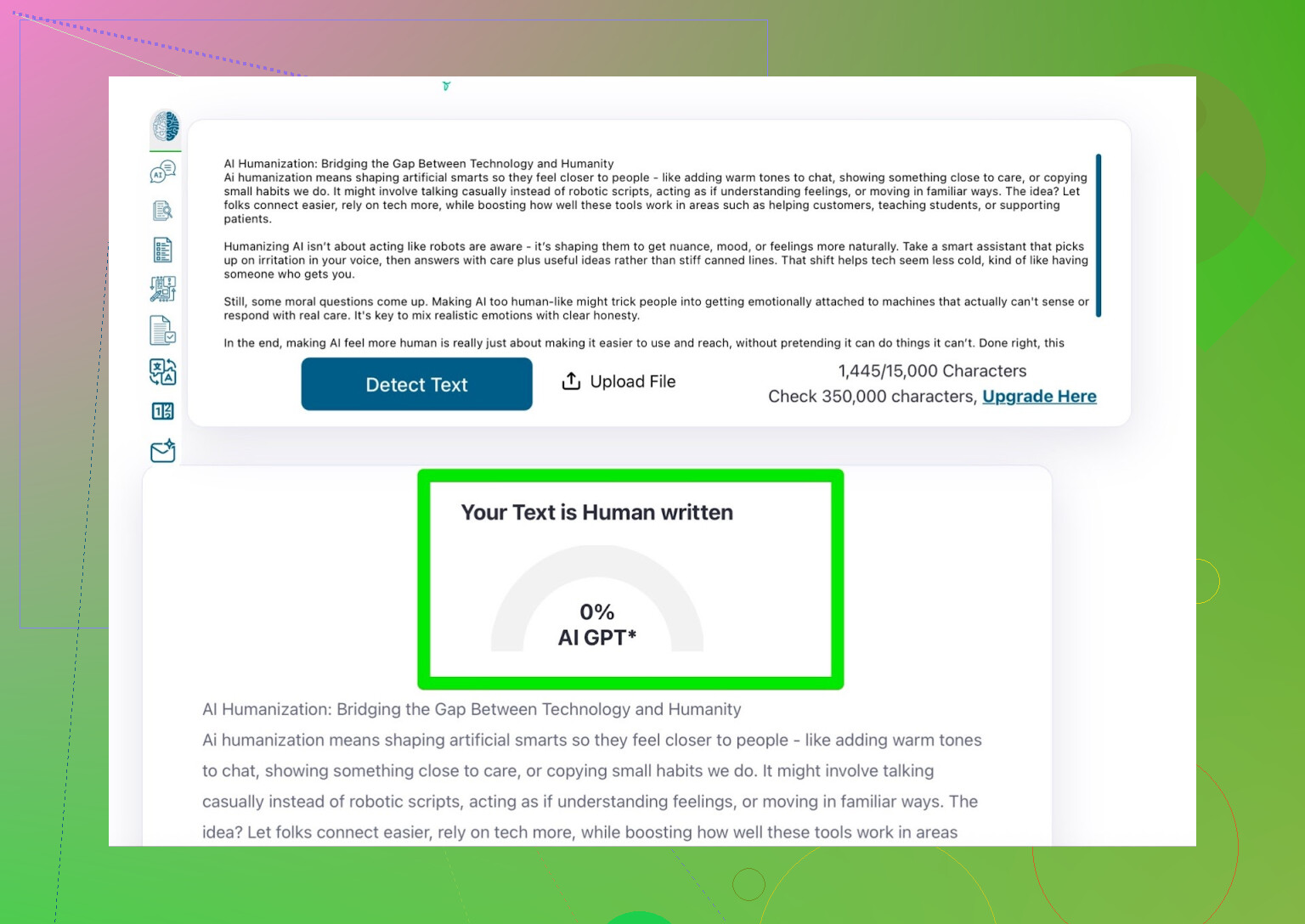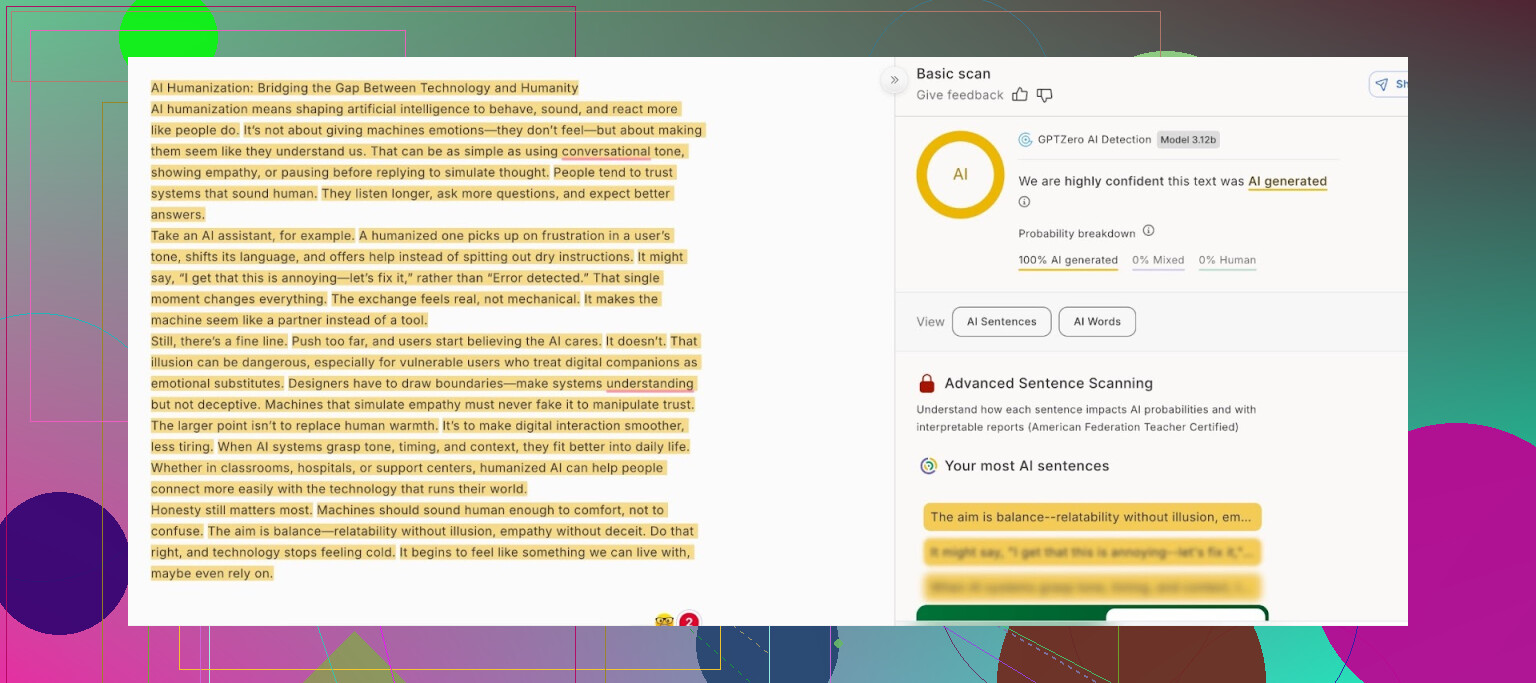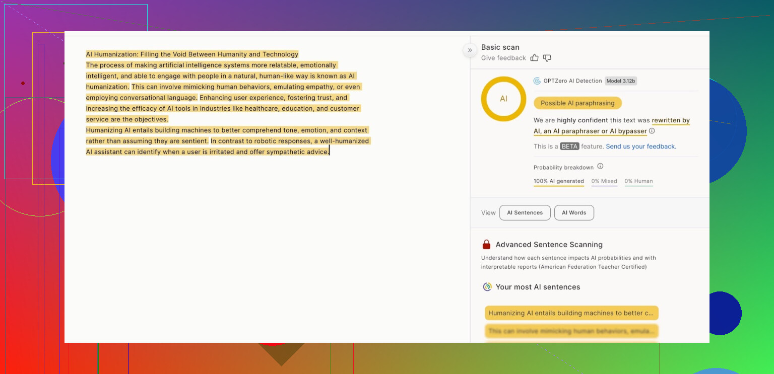 Testei. Enviei o texto “humanizado” no detector próprio e em outros por fora também.