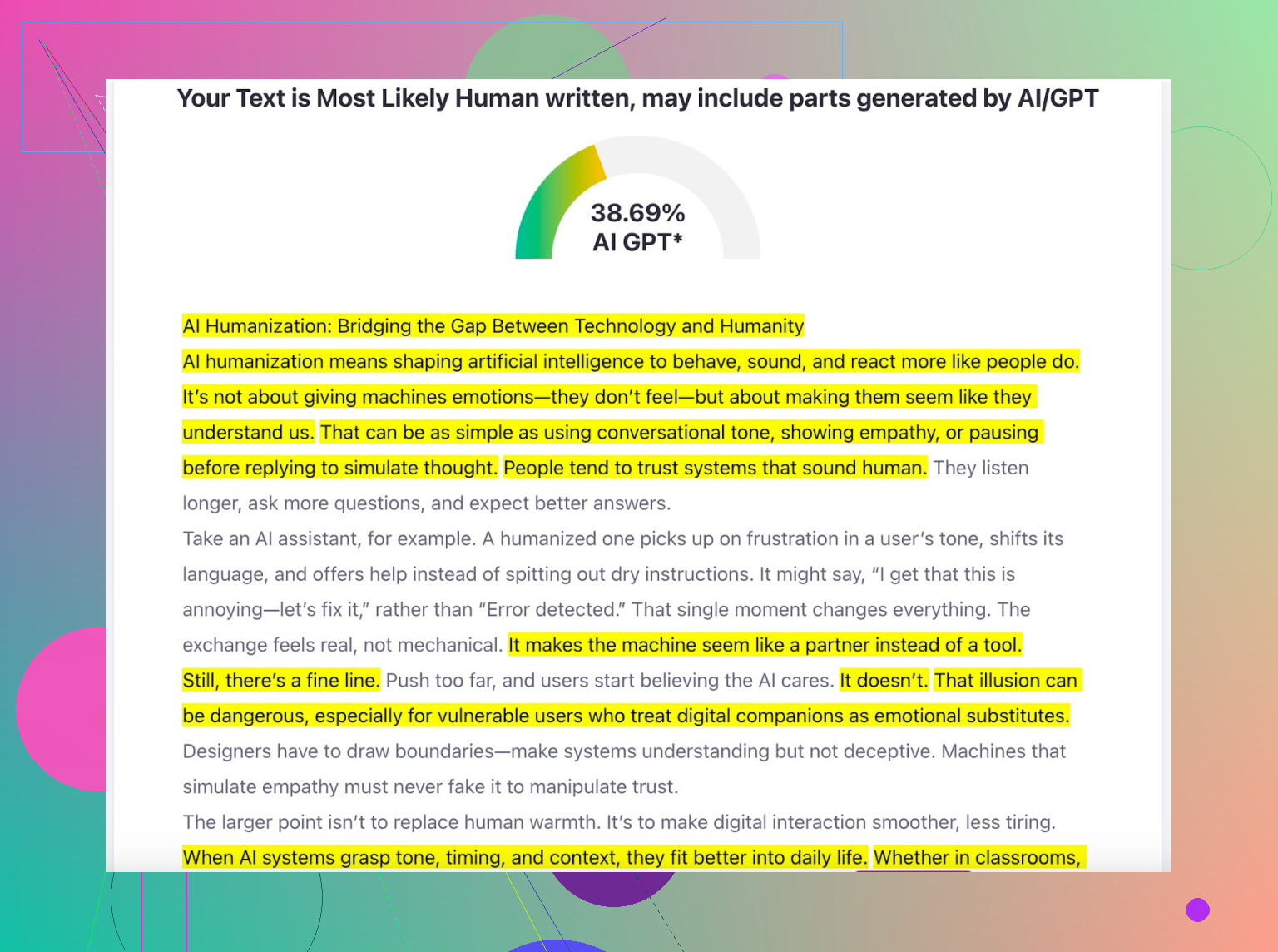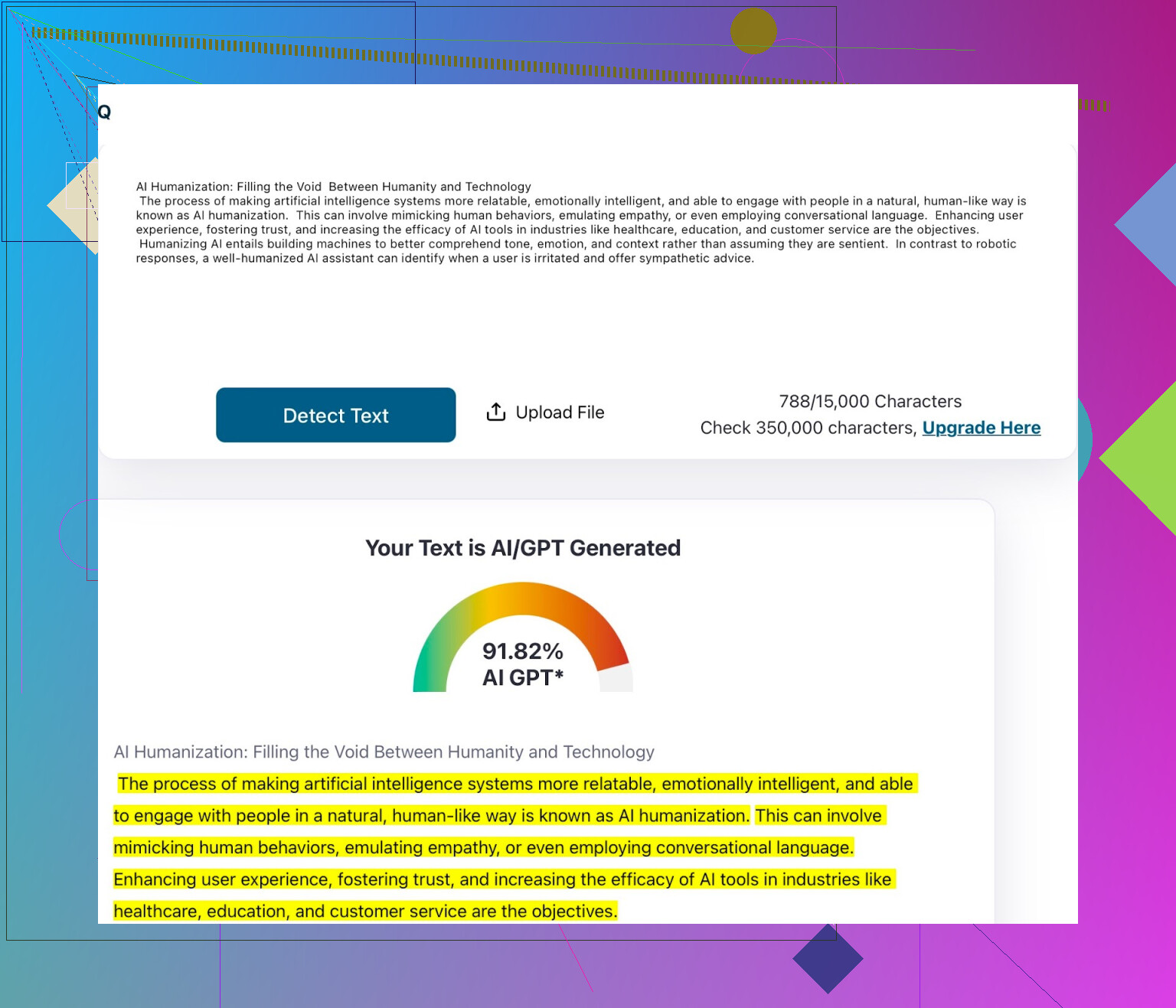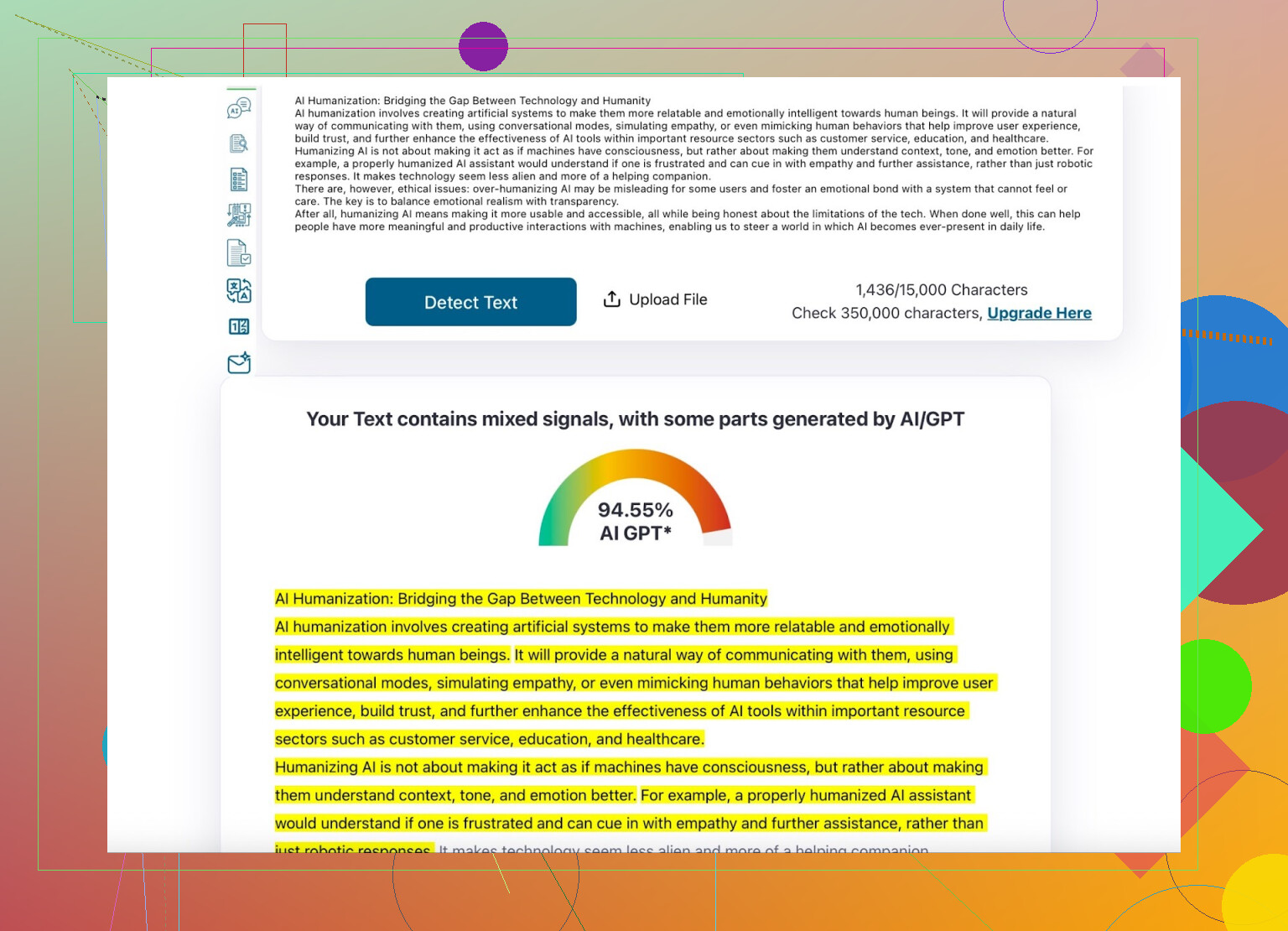 Testei. Enviei o texto “humanizado” no detector próprio e em outros por fora também.
