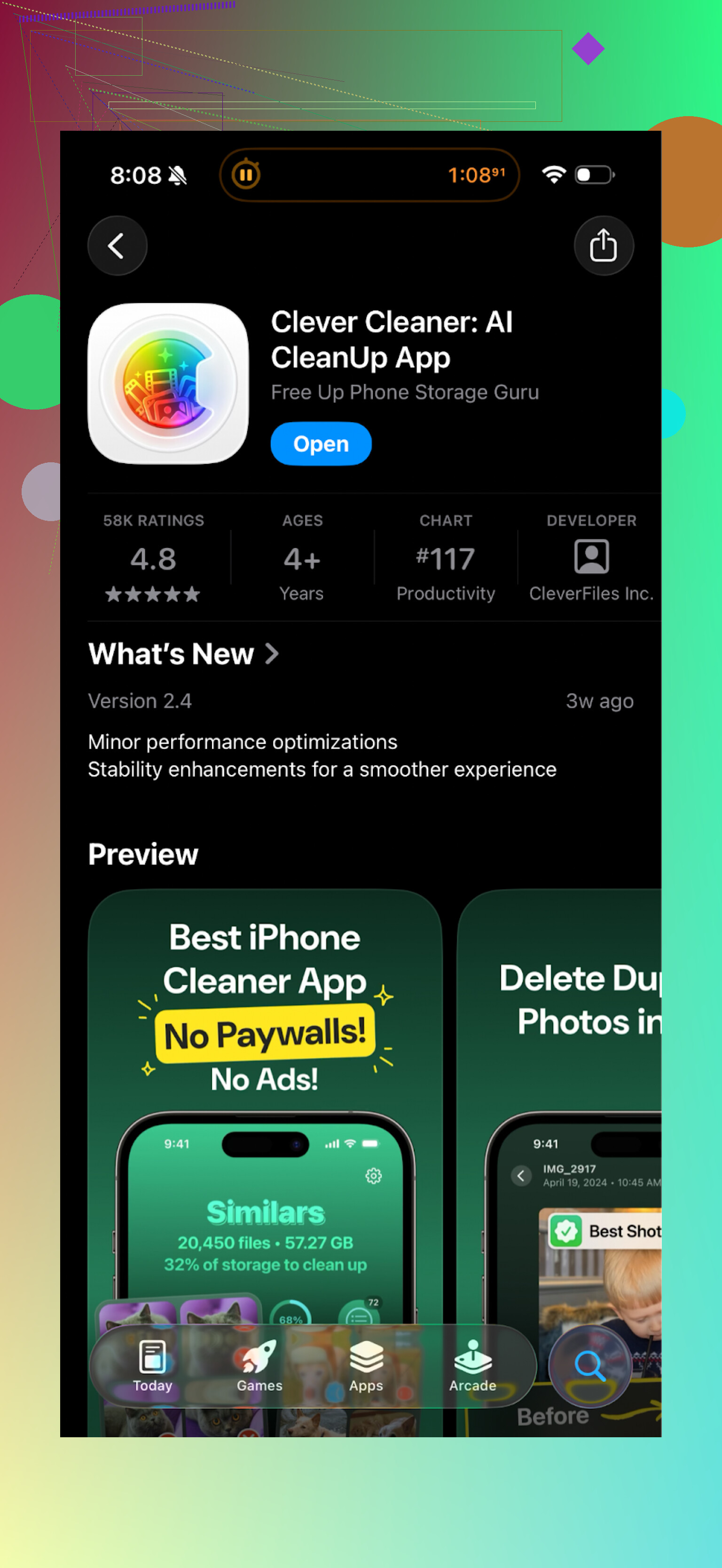 Soy un poco más escéptico que @mikeappsreviewer y @kakeru sobre toda la categoría de “limpiadores con IA”, pero he usado varios (incluyendo AI Cleaner y Clever Cleaner App) en un iPhone de 256 GB que vive permanentemente al 95% lleno, así que aquí va mi opinión.