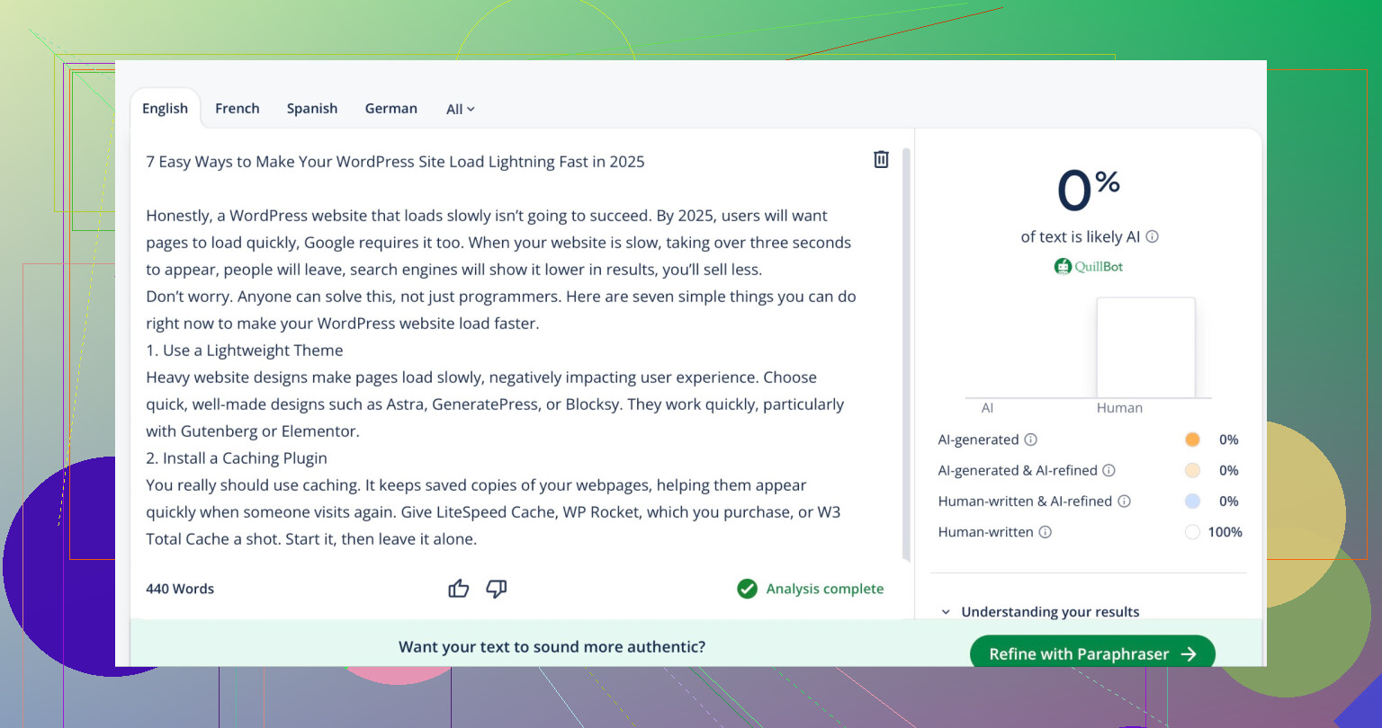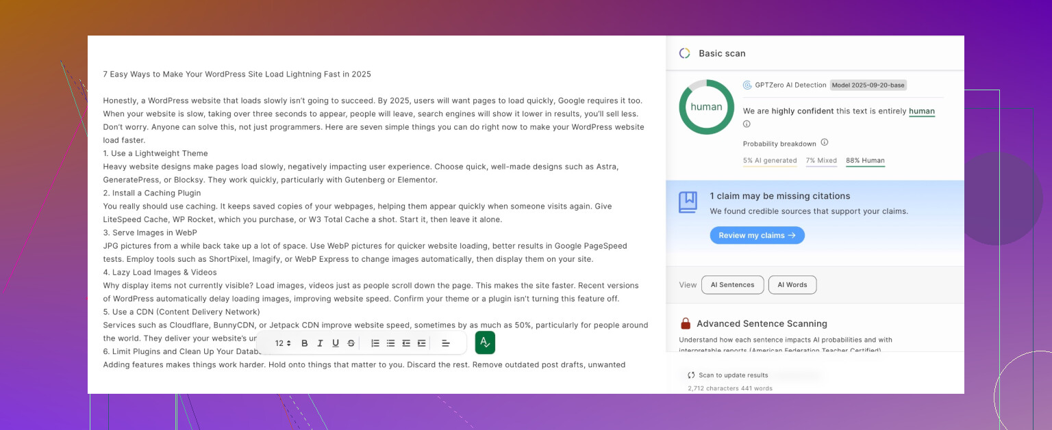 For extra-natty flavor, I sometimes intentionally drop a comma or use regional slang, but your mileage may vary. The paid stuff promises magic but usually just burns your wallet. Bonus tip: Running the content through multiple detectors after humanizing (ZeroGPT/Quillbot) gives you that confidence check—something not everyone mentions.