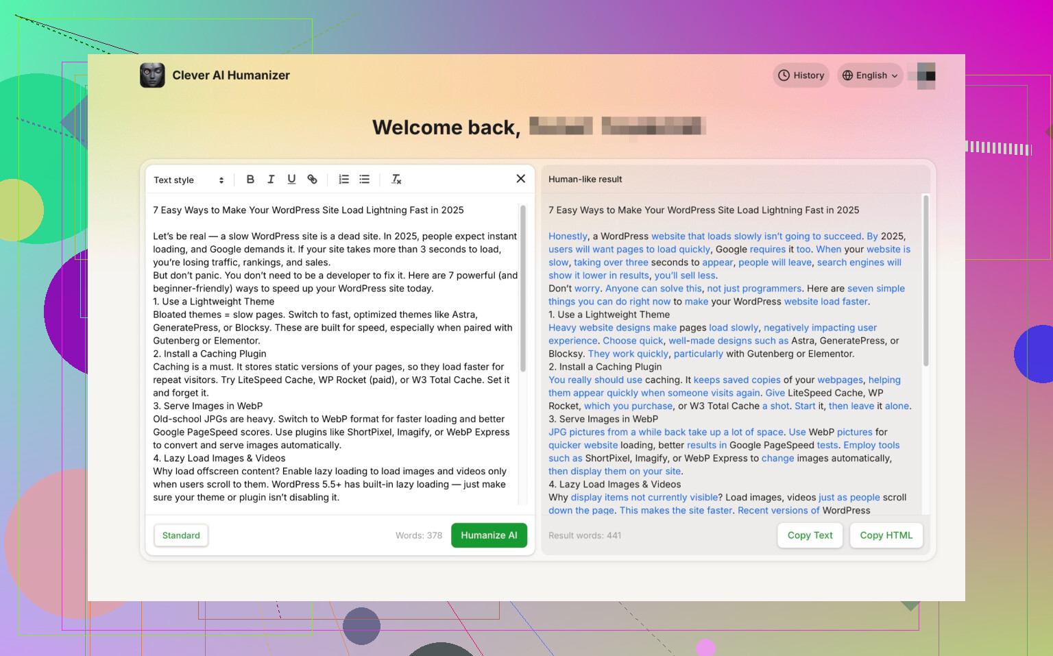 Every time I ran something through it, results came back crazy fast (like “refreshed and ready” before my coffee cooled). It supposedly handles any language too, but I only tried English and some Spanish. No complaints on pace, but the outputs sometimes play it too safe—commas vanish, and occasionally, it dials down the complexity. Still, it wipes the floor with the high-dollar options in terms of cost/benefit.